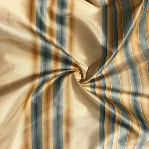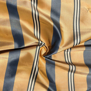 56" 100% Silk Gold Yellow Blue Striped 5 OZ Woven Fabric By the Half Yard