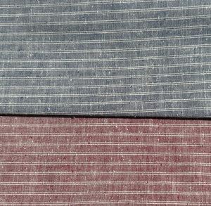 56" Linen & Cotton Blue Red Striped 5 OZ Woven Fabric By the Yard